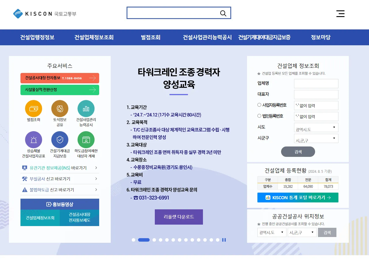 - 일반 국민과 관련 기관/단체에 건설산업 정보를 제공합니다.