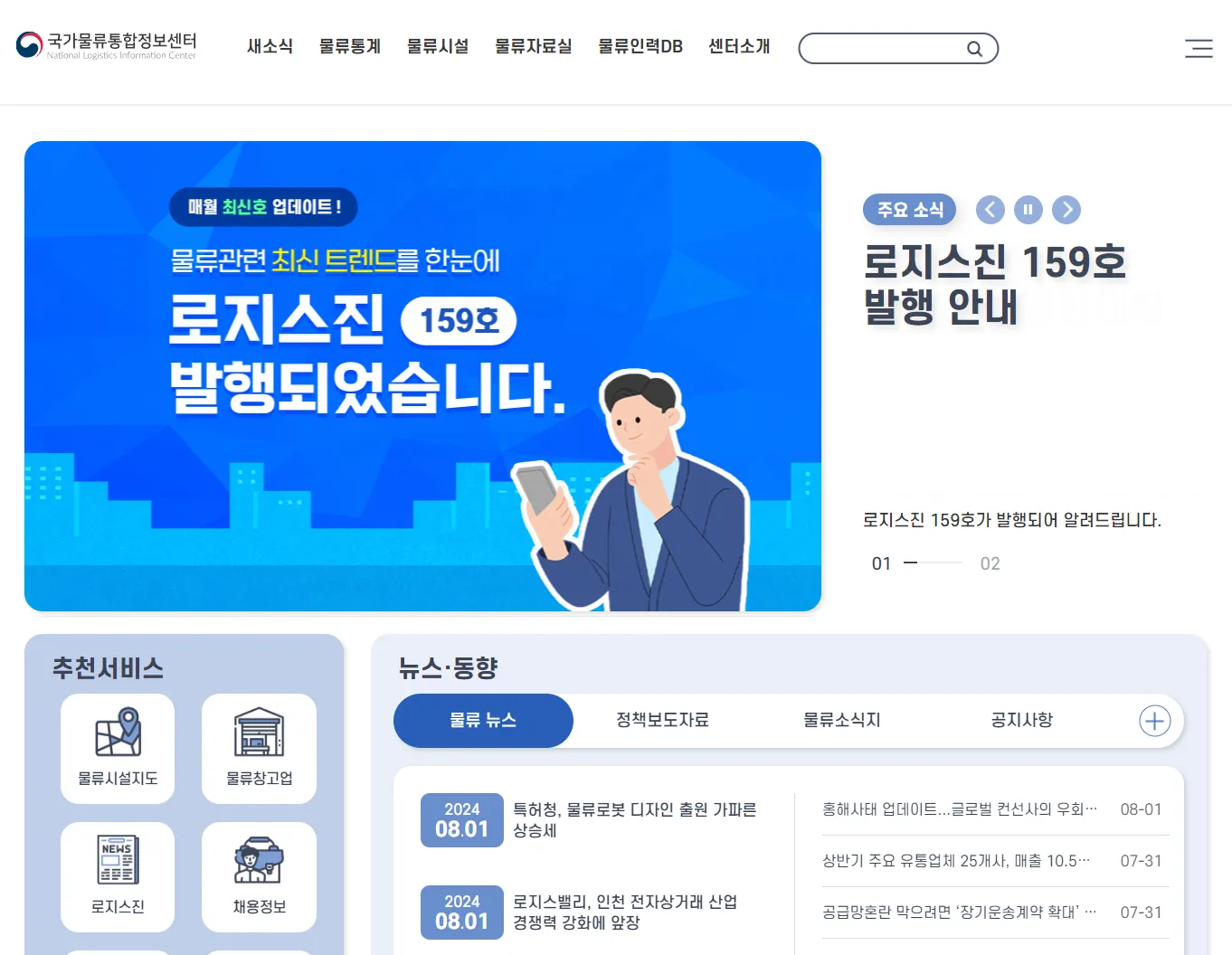 - 물류자료: 물류 정책 자료, 우수 물류 신기술, 물류기업, 물류 스타트업, 물류 기기 및 용어 등을 제공합니다.