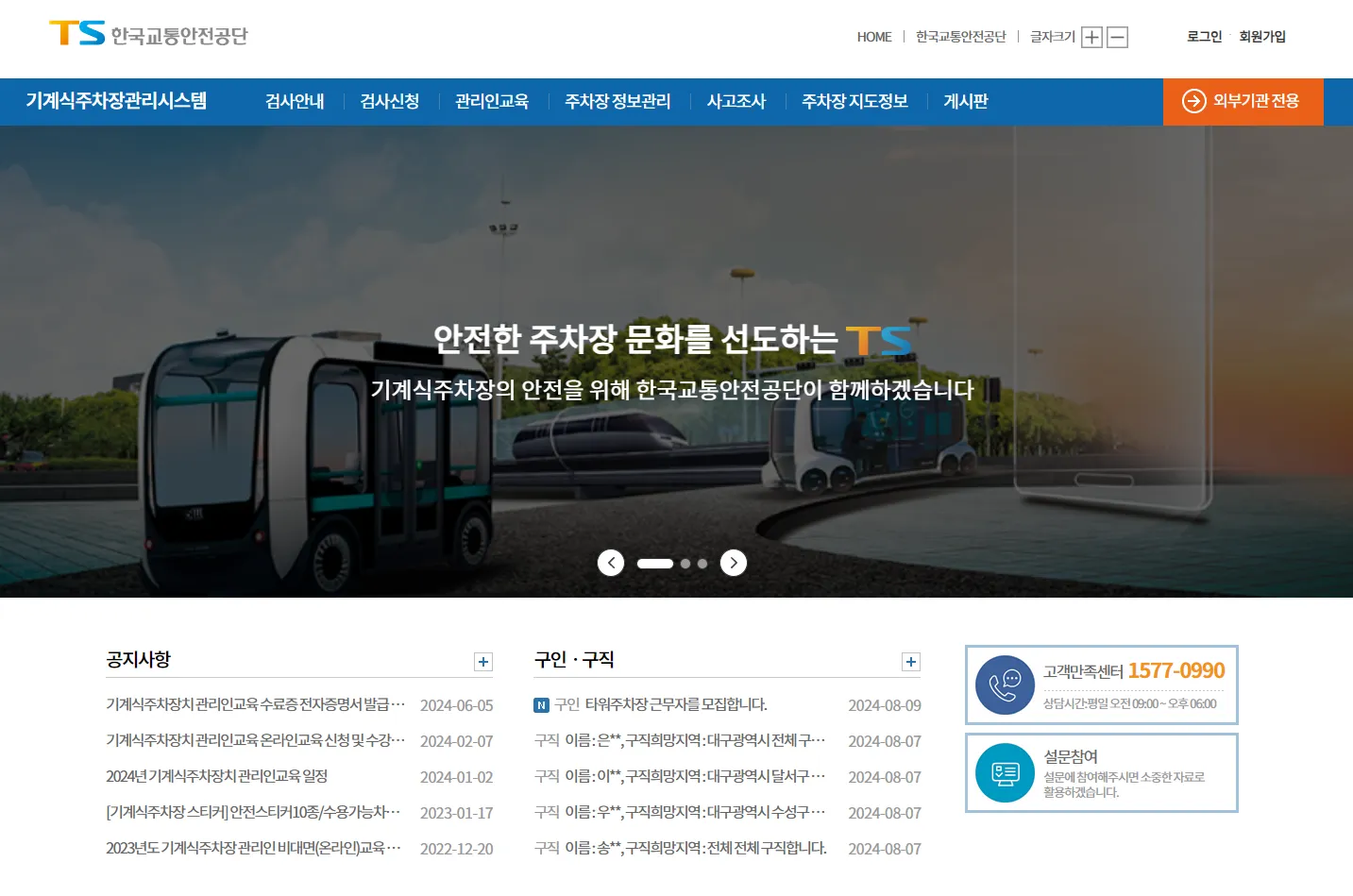 기계식 주차장 관리인 교육 정보를 제공하고, 주차장에서 발생한 사고에 대한 조사도 수행합니다.