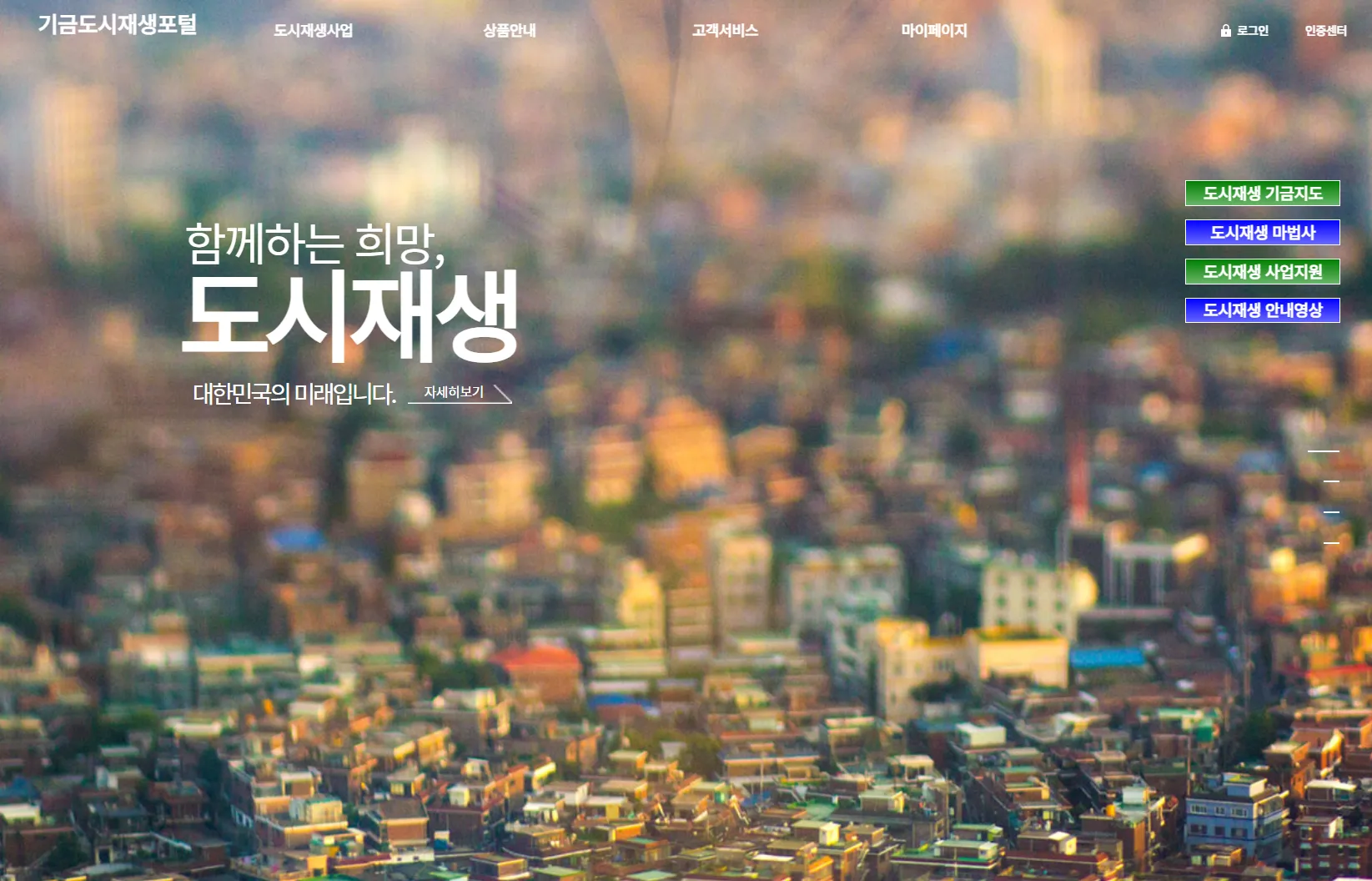 - 도시재생 관련 정보 제공: 도시재생 기금, 금융 상품, 상담 신청 등의 정보를 국민들에게 제공