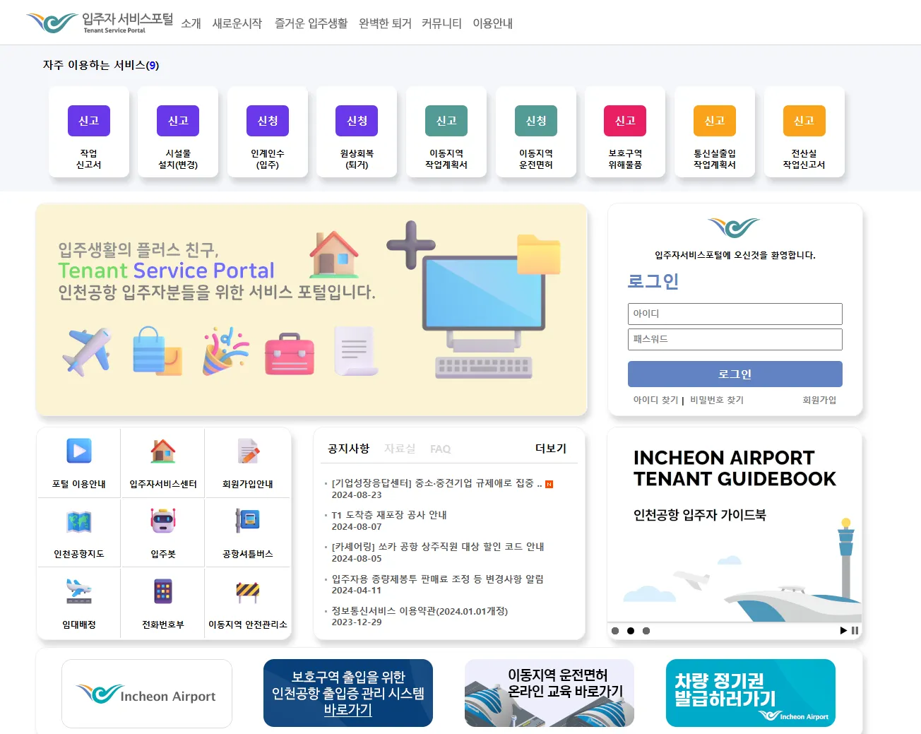 - 입주자포털: 공항 입주자들이 이용하는 서비스 포탈