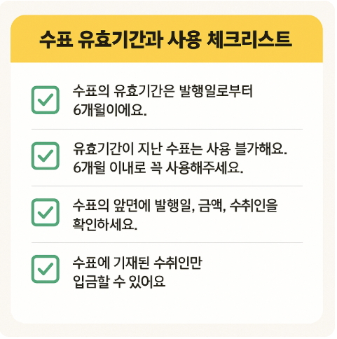 타행수표는 입금 후 즉시 사용이 불가하므로 입금 처리 일정을 미리 확인하는 것이 좋습니다.