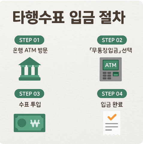 타행수표는 입금 후 즉시 사용이 불가하므로 입금 처리 일정을 미리 확인하는 것이 좋습니다.