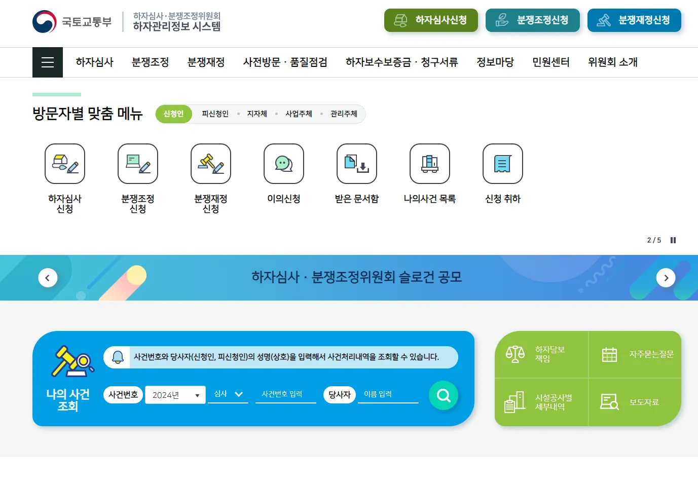 - 하자심사 분쟁조정위원회 신청서 접수 및 사건 처리 등을 위한 시스템