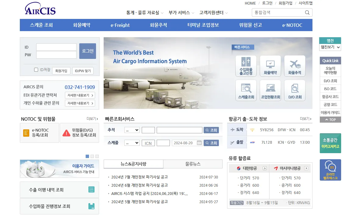 - 물류처리정보 제공: 항공물류와 관련된 다양한 정보를 실시간으로 제공하여 물류 처리의 효율성을 극대화합니다.