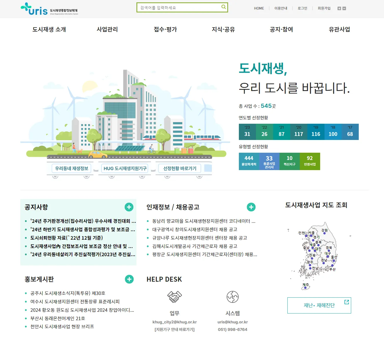 - 도시재생 정책 및 사업 정보 제공: 도시재생과 관련된 정책과 사업에 대한 정보를 소개하며, 정책 및 사업의 홍보를 지원합니다.