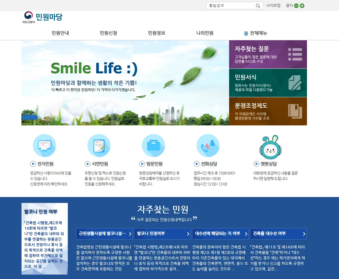 - 민원자료 제공: 민원 서식 및 민원사무처리 기준을 제공하여 민원 제출 과정에서 필요한 정보를 지원합니다. 또한, 자주 찾는 질문(FAQ)을 통해 민원인들이 자주 겪는 문제를 신속하게 해결할 수 있도록 돕습니다.