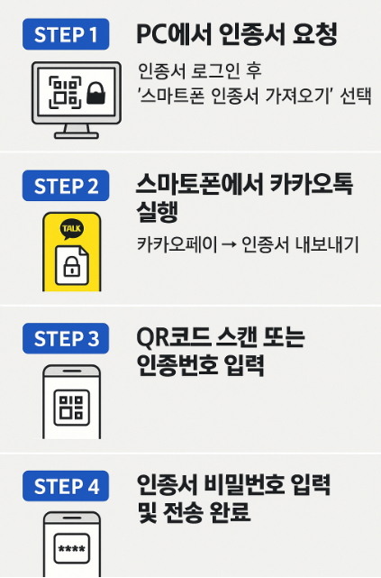 스마트폰에 저장된 인증서를 간편하게 PC로 내보내는 방법을 한눈에 알 수 있도록 단계별로 정리해드립니다.