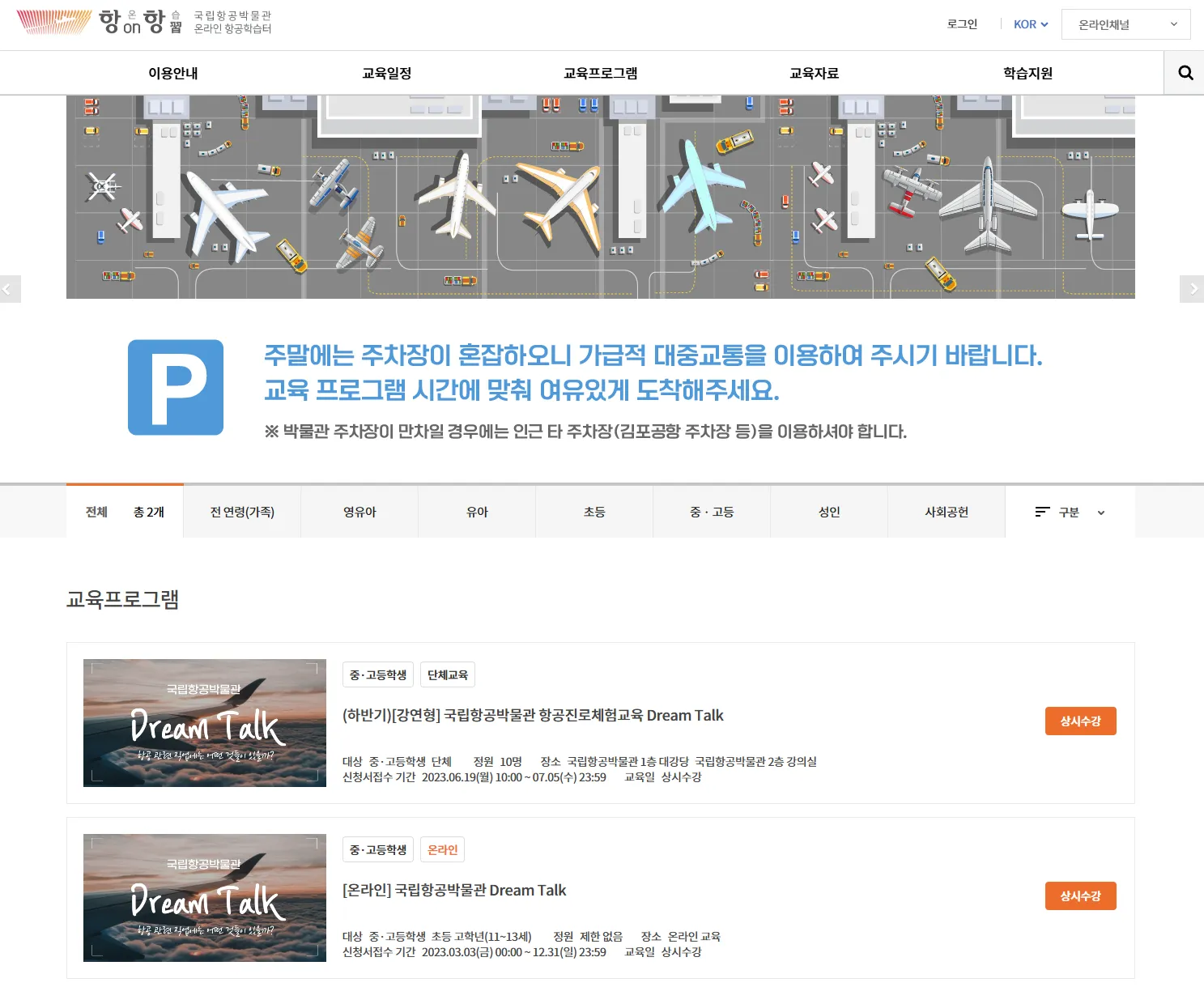 - 온/오프라인 교육 프로그램 관리: 국립항공박물관에서 운영하는 다양한 교육 프로그램의 신청 및 운영을 원활하게 관리합니다.